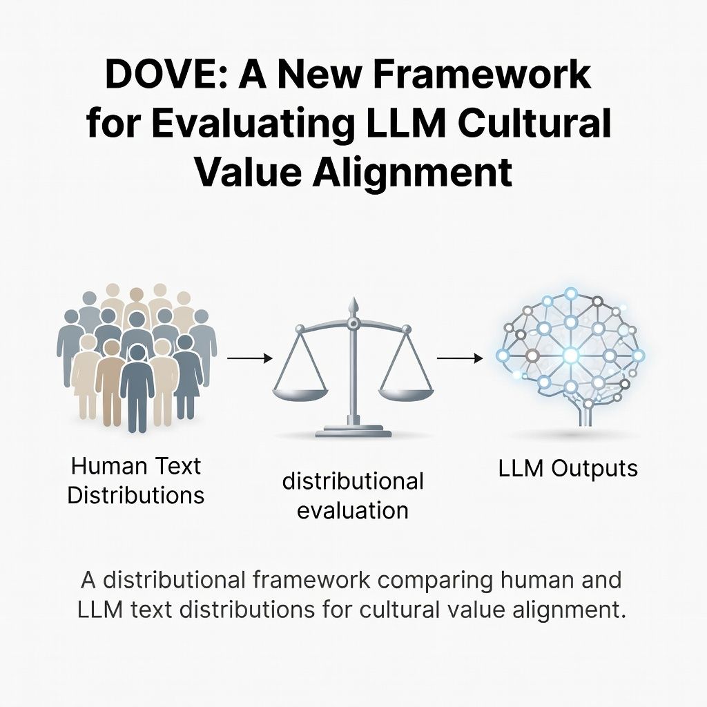 A new research paper from arXiv introduces DOVE, a distributional evaluation framework designed to better assess how Large Language Models align with diverse cultural values. Unlike traditional benchmarks that rely on discriminative, multiple-choice questions, DOVE directly compares the statistical distributions of human-written text against LLM-generated outputs. This approach aims to move beyond simply testing a model's knowledge of values to actually probing its true cultural orientations in open-ended generation scenarios.